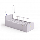 Кровать оборудована интуитивно понятной системой управления - проводной пульт позволяет плавно регулировать высоту изголовья и ножной части, обеспечивая максимальный комфорт для пациента. Легкие алюминиевые ограждения с быстрым механизмом опускания обеспечивают удобный доступ к пациенту. Конструкция рассчитана на нагрузку до 200 кг.